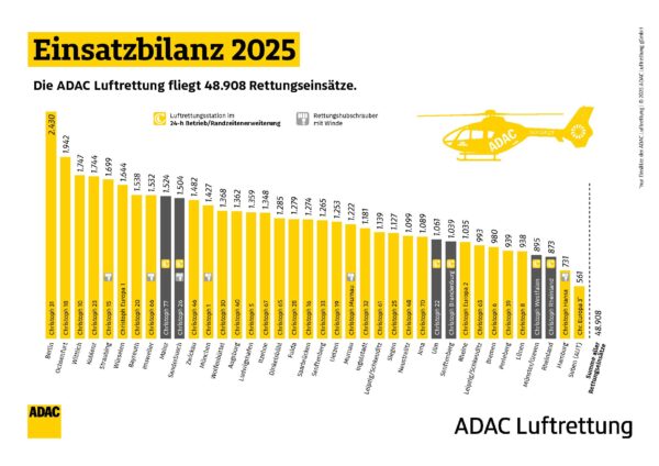 Die ADAC Luftrettung gGmbH betreibt bundesweit 60 Rettungshubschrauber an 37 Stationen und zählt zu den größten Luftrettungsorganisationen Europas. Christoph 67 ist fester Bestandteil des deutschen Rettungsdienstsystems. Alarmiert wird er ausschließlich über die Notrufnummer 112 durch die zuständige Leitstelle. Deutschlandweit verzeichnete die ADAC Luftrettung im Jahr 2025 insgesamt 48.908 Einsätze – nahezu auf dem Niveau des Vorjahres. Für Schleswig-Holstein zeigt die Bilanz jedoch besonders deutlich: Der Standort Hohenlockstedt ist längst ein unverzichtbarer Baustein in der Notfallversorgung – auch für die Westküste.