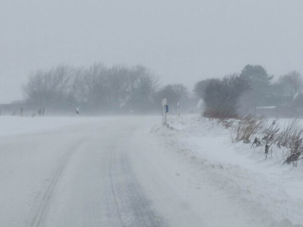 Ein Hörer hat uns von teils sehr schwierigen Fahrbedingungen auf der Strecke zwischen Nieblum und Alkersum berichtet. Demnach sei die Fahrt am Vormittag „grenzwertig“ gewesen. Aufgrund des Gegenverkehrs habe er stellenweise anhalten müssen, um sicher passieren zu können. Der Bericht passt zu den aktuellen Warnungen vor Schneeverwehungen und eingeschränkter Sicht. Verkehrsteilnehmer werden gebeten, besonders vorsichtig zu fahren und unnötige Fahrten möglichst zu vermeiden.