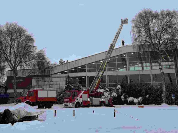 Große Schneelast: Einsatz auf dem Dach der Schwimmhalle in Niebüll
