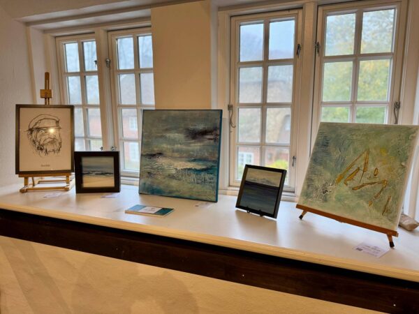 Im Dörpshus Nieblum erwartet Besucherinnen und Besucher derzeit eine Ausstellung, die ihrem Titel alle Ehre macht: „Unter-Wasser-Welten“. Die Flensburger Künstlerin Cilly Schröder lädt mit ihren Bildern und Installationen zu einer faszinierenden Reise in die Tiefe ein – dorthin, wo Licht, Bewegung und Emotion miteinander verschmelzen.