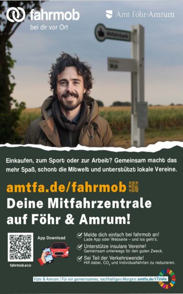 Im Rahmen ihrer Nachhaltigkeitsstrategie setzen die Inseln Föhr und Amrum verstärkt auf alternative Verkehrsangebote. Eine zeitgemäße und zugleich solidarische Lösung bietet dabei das gemeinsame Autofahren – organisiert über digitale Plattformen. Neu dabei: Die Mitfahrplattform fahrmob.eco, die jetzt auch auf Föhr und Amrum gestartet ist.