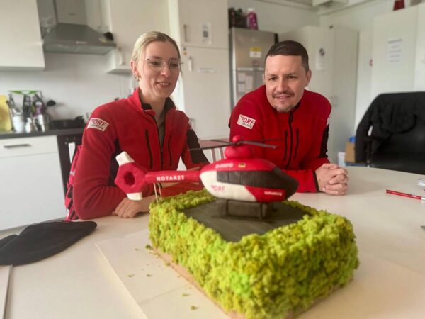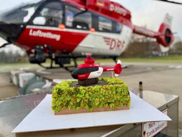 Auf der Torte prangte ein originalgetreuer Hubschrauber in Rot, Weiß und Schwarz – dem „Christoph Europa 5″ nachempfunden. Sogar der Föhrer Flugplatz war als Landefläche modelliert. Rund 25 Stunden Arbeit steckten in diesem Kunstwerk, das zudem vollständig rein pflanzlich gebacken wurde.
