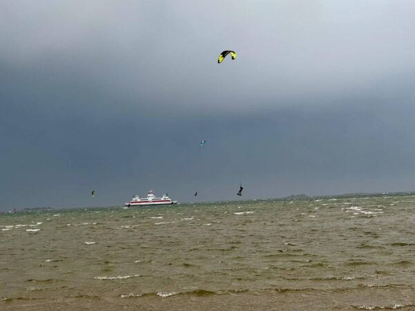 Kiten auf Föhr ist nichts für Schönwetterfans. Erst wenn der Wind mit rund 30 Knoten oder mehr weht, kann der Wettkampf stattfinden. Das sorgt für Spannung bis zum letzten Moment – und für spektakuläre Bilder, wenn die Bedingungen perfekt sind.