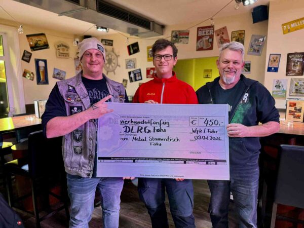 Die Wahl fiel auf die DLRG Föhr. Bei einer kleinen Übergabe im Erdbeerparadies überreichte der Metal-Stammtisch 450 Euro an Vertreter der DLRG. DLRG-Sprecher Frithjof Borth zeigte sich dankbar: Die Spende sei zwar finanziell überschaubar, habe aber eine große symbolische Bedeutung. Das Geld soll für Aus- und Fortbildungen genutzt werden sowie der Jugendarbeit zugutekommen – etwa für gemeinsame Aktionen oder motivierende Angebote für den Nachwuchs. Gleichzeitig nutzte die DLRG die Gelegenheit, um erneut für Engagement zu werben: Gesucht werden sowohl Jugendliche als auch Erwachsene, die sich auf Föhr einbringen möchten – sei es im Wasserrettungsdienst, als Sanitäter bei Veranstaltungen oder in der Ausbildung.