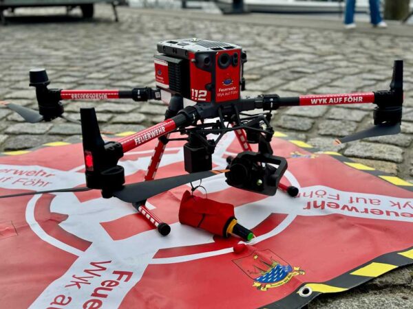 Was über dem Hafen schwebt, ist kein Freizeitgerät, sondern ein echtes Arbeitsmittel. Die Drohne vom Typ „Matrice 350 RTK“ gehört zur Profi-Klasse, kostet rund 30.000 Euro und ist aktuell die einzige ihrer Art auf Föhr. Mit Wärmebildkamera, hochauflösender Optik und Sensoren zur Hinderniserkennung liefert sie präzise Bilder aus der Luft – und kann zusätzlich Ausrüstung transportieren. „Wir haben die Möglichkeit, Dinge abzuwerfen oder auch Scheinwerfer anzubauen“, erklärt Drohnenteamleiter Ralph Weindel. Mit bis zu 1,6 Kilogramm Nutzlast bleibt dabei genug Spielraum für verschiedene Einsatzszenarien.