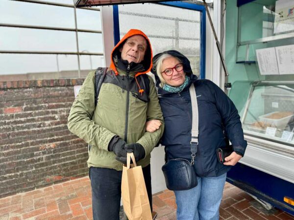 Was seinen Stand ausmacht, ist die besondere Atmosphäre. Direkt am Hafen, locker im Ton, ehrlich im Umgang – und immer mit einem Augenzwinkern. Hier wird nicht nur bestellt, hier wird geschnackt. Über den Alltag auf der Insel, über das Leben – und aktuell vor allem über ein Thema, das viele beschäftigt: die Preise.
