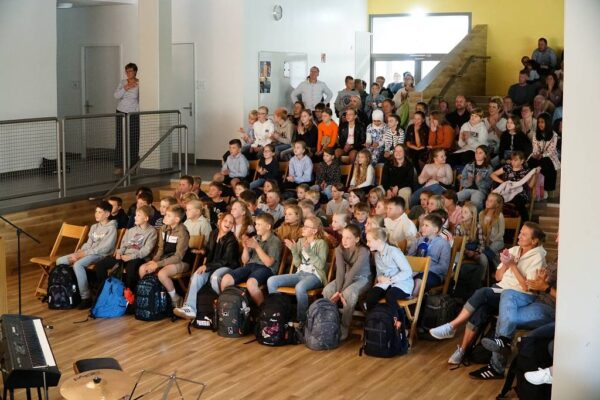 Ein besonderer Tag für 65 Mädchen und Jungen: Mit einer festlichen Einschulungsfeier wurden die neuen Fünftklässlerinnen und Fünftklässler an der Eilun-Feer-Skuul willkommen geheißen. In der Aula erwartete sie ein buntes Programm mit Musik, kleinen Sketchen und sogar einer Vorführung mit Springseilen.