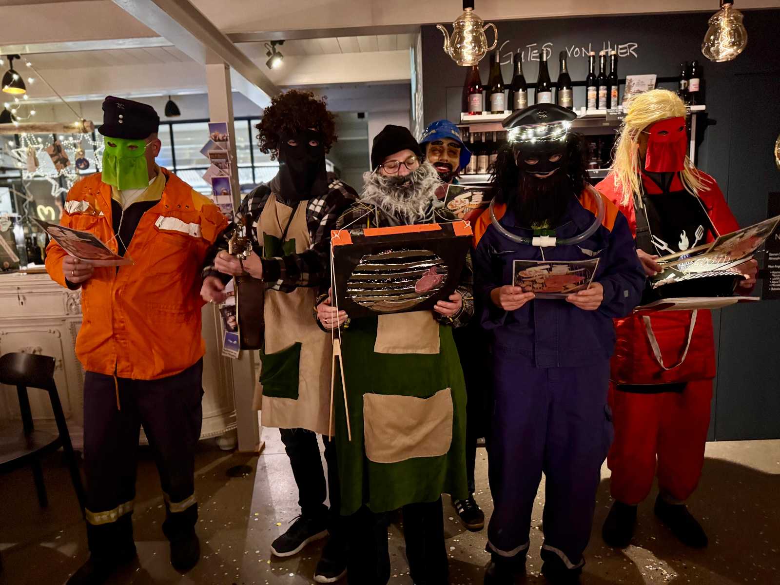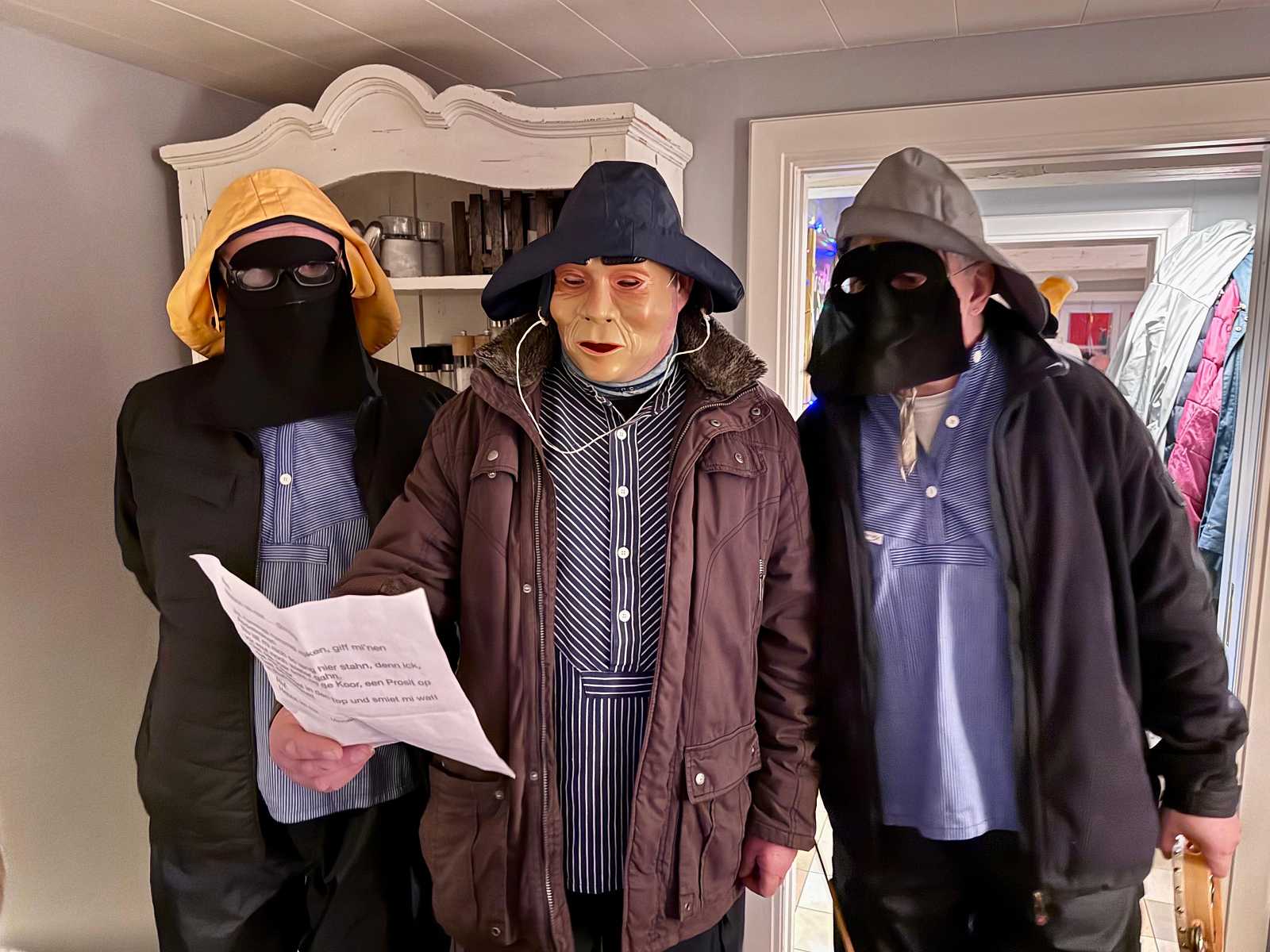 • Sie erscheinen in traditioneller Arbeitskleidung und wünschen Passanten Glück fürs neue Jahr.