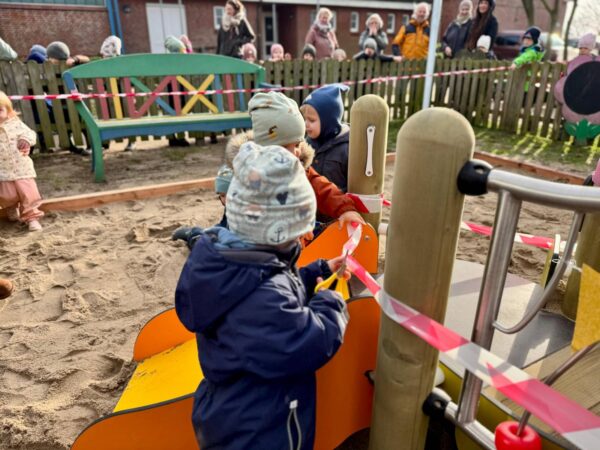 Es ist ein grauer Novembervormittag in Midlum – aber auf dem Gelände der Kita „Hopeltuutser“ leuchtet plötzlich etwas so kräftig, dass selbst das Schietwetter keine Chance hat: Die neue Spielanlage, liebevoll „die Kirsche“ genannt, steht bereit. Und rund 40 kleine Krabbelmonster können es kaum erwarten, sie zu erobern. Was folgt, ist ein Einweihungsmoment voller Freude, Lachen und strahlender Kinderaugen.