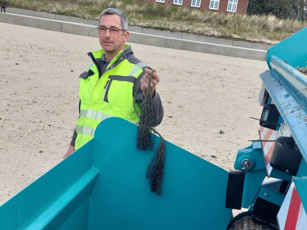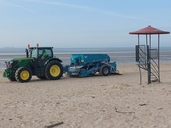 Nach den vergangenen Stürmen hat sich am Südstrand ein neuer Flutsaum gebildet. Genau hier kommt schweres Gerät zum Einsatz: Mit einer speziellen Strandreinigungsmaschine wird der Sand gründlich durchgesiebt. Dabei werden Holzstücke, Kunststoffteile und auch Seegras aus dem Sand gefiltert. Selbst kleinere Kunststoffrückstände, etwa von sogenannten „Dolly Ropes“ aus der Schifffahrt, werden entfernt.