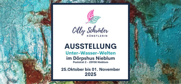 Vom 25. Oktober bis 1. November 2025 präsentiert die Flensburger Mixed-Media-Künstlerin Cilly Schröder ihre aktuelle Ausstellung „Unter-Wasser-Welten“ im Dörpshus Nieblum.